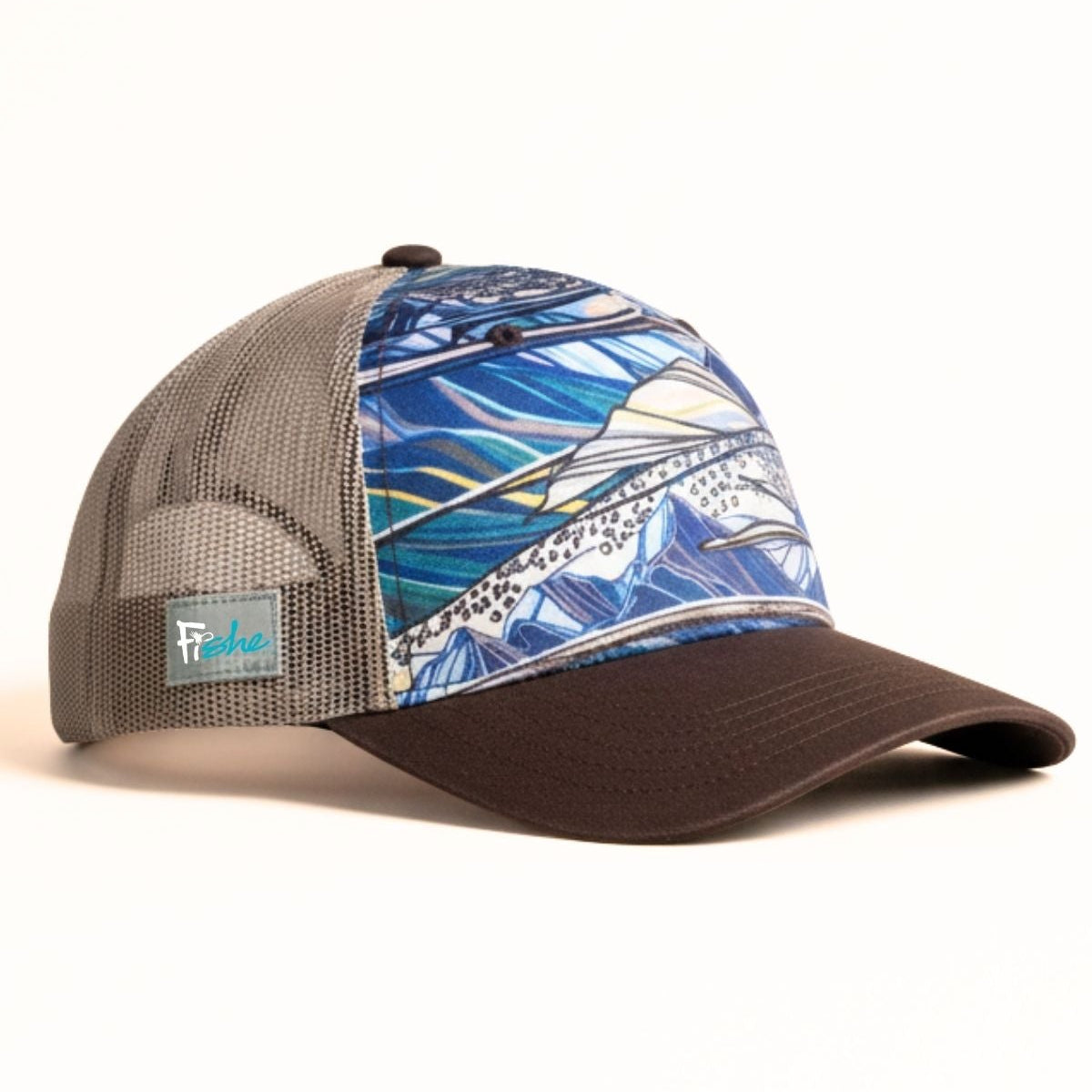 And the print? Pure Fishe energy. The Rainbow Ridge abstract pattern adds a vibrant, fish-meets-ridgeline vibe to your look. Whether it’s your first Fishe hat or your fifth, this one’s made to turn heads.