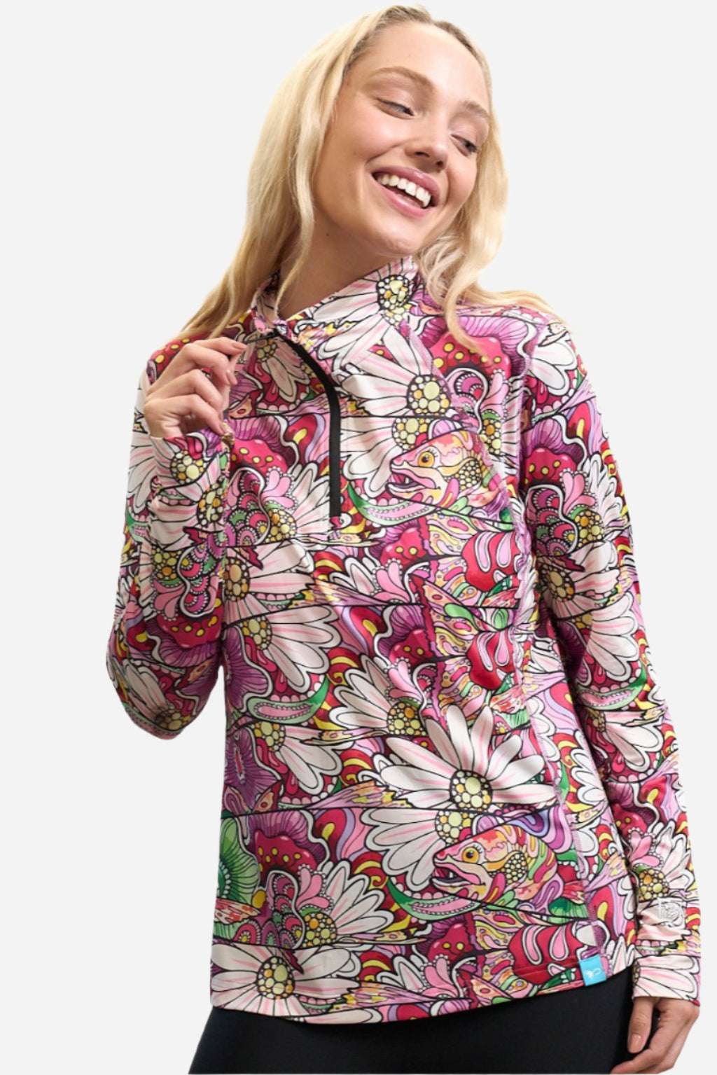 Featuring our signature Sockeye Salmon-inspired print, this lightweight quarter-zip keeps you cool when the action heats up. Whether you're casting lines, paddling out, or exploring trails, the moisture-wicking, breathable fabric moves with you—never against you.