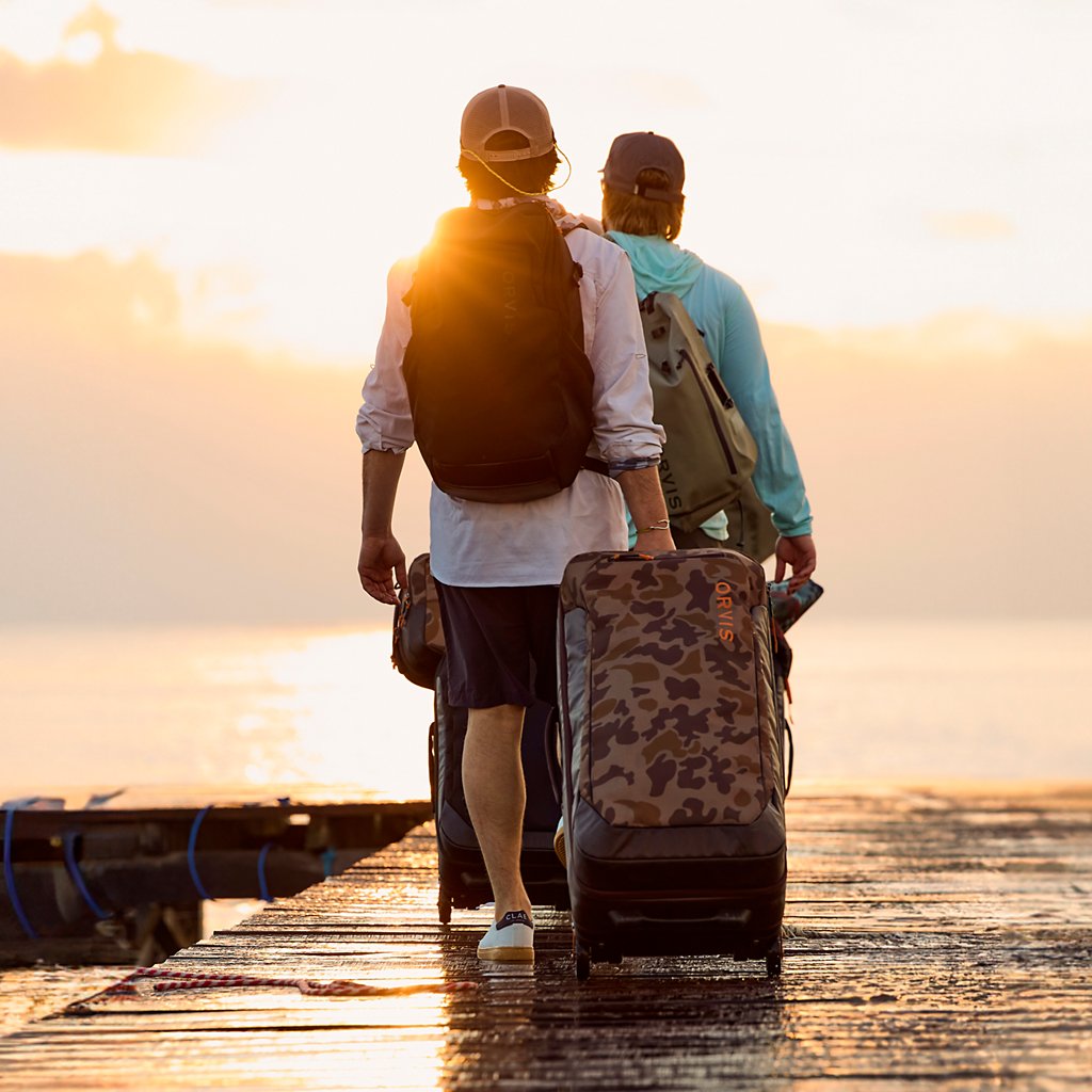 - Water-repellent roller bag sized for longer trips