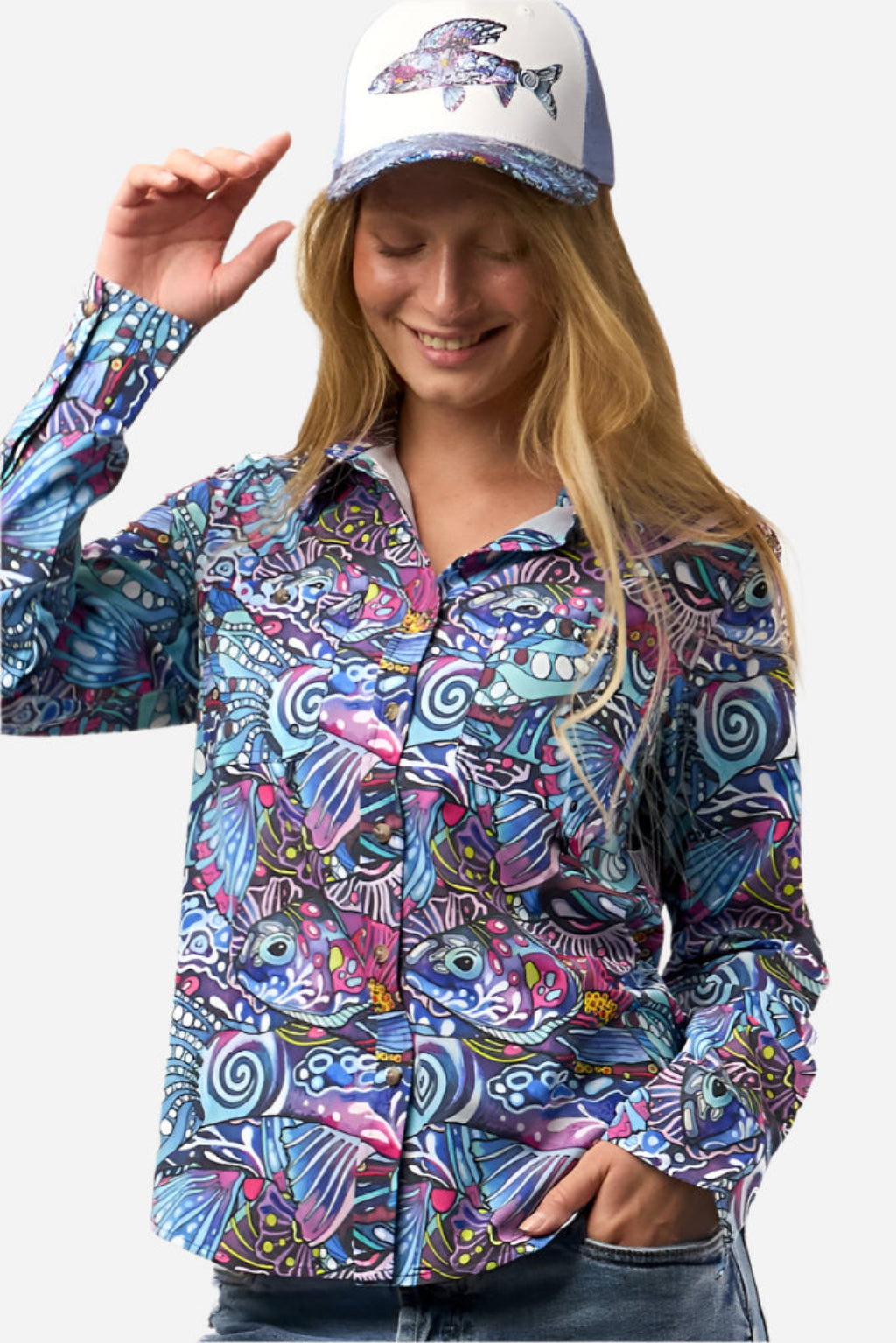 Adventure-ready meets everyday bold. The Enchanted Grayling Trucker Hat delivers all-day comfort and breathable performance wrapped in one of our most iconic prints. Whether you’re casting lines, hitting the trail, or repping your Fishe style in town, this mid-profile trucker keeps your look cool and functional.