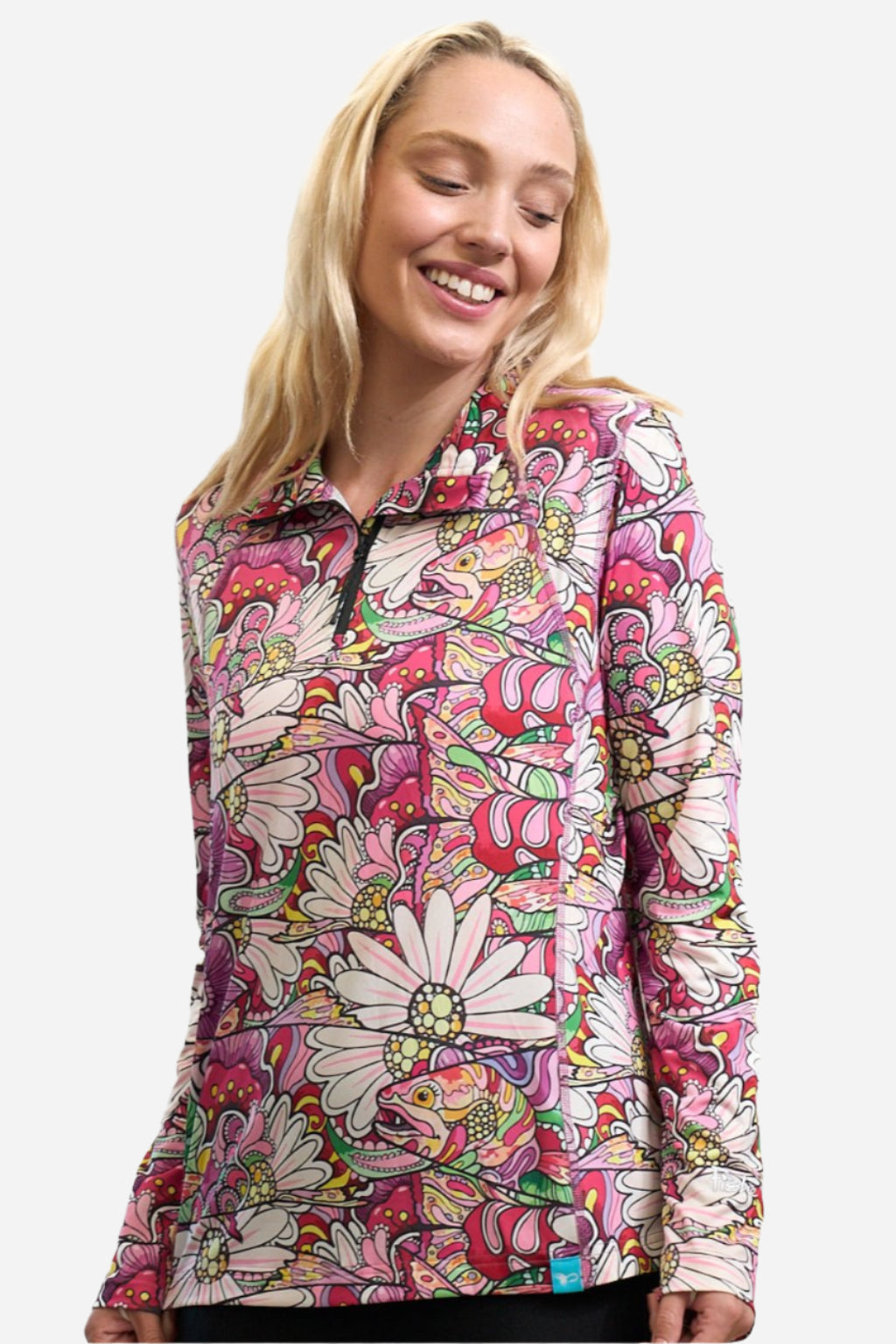 Featuring our signature Sockeye Salmon-inspired print, this lightweight quarter-zip keeps you cool when the action heats up. Whether you're casting lines, paddling out, or exploring trails, the moisture-wicking, breathable fabric moves with you—never against you.