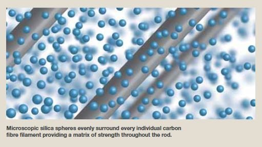 All carbon rods utilise carbon fibres that are bonded together by an adhesive resin. The resin material used in SINTRIX® is produced by 3M, it is a unique and patented material incorporating silica nano spheres which provides two distinct benefits. Firstly the microscopic silica spheres are able to evenly surround every individual carbon fibre filament providing a matrix of strength throughout the rod. Secondly, being spherical, the silica particles are able to resist pressure and compression from any angle. This is particularly important because it is under compression forces, on the underside of a bent rod, rather than tension forces, on the outside of the curve, that carbon fibre is most likely to weaken and potentially break. So by resisting compression better SINTRIX® rods are stronger.