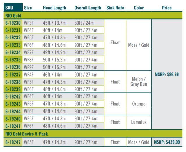 The RIO GOLD has a revolutionary taper design that gives incredible loop stability at distance, a unique profile that allows a rod to load at close range and a front taper that delivers perfect presentation of flies between sizes #22 and #2. The RIO Gold is the ultimate all round, floating line for the trout fly fisher and is built with "MaxFloat Tip" technology, RIO's proprietary tip coating formula that floats more than twice as high as regular line tips, without any increase in diameter. In addition, this line is built with SlickCast, creating the slickest, most durable coating on the market—producing the least amount of friction ever measured in a fly line.