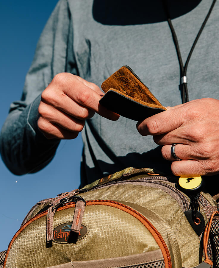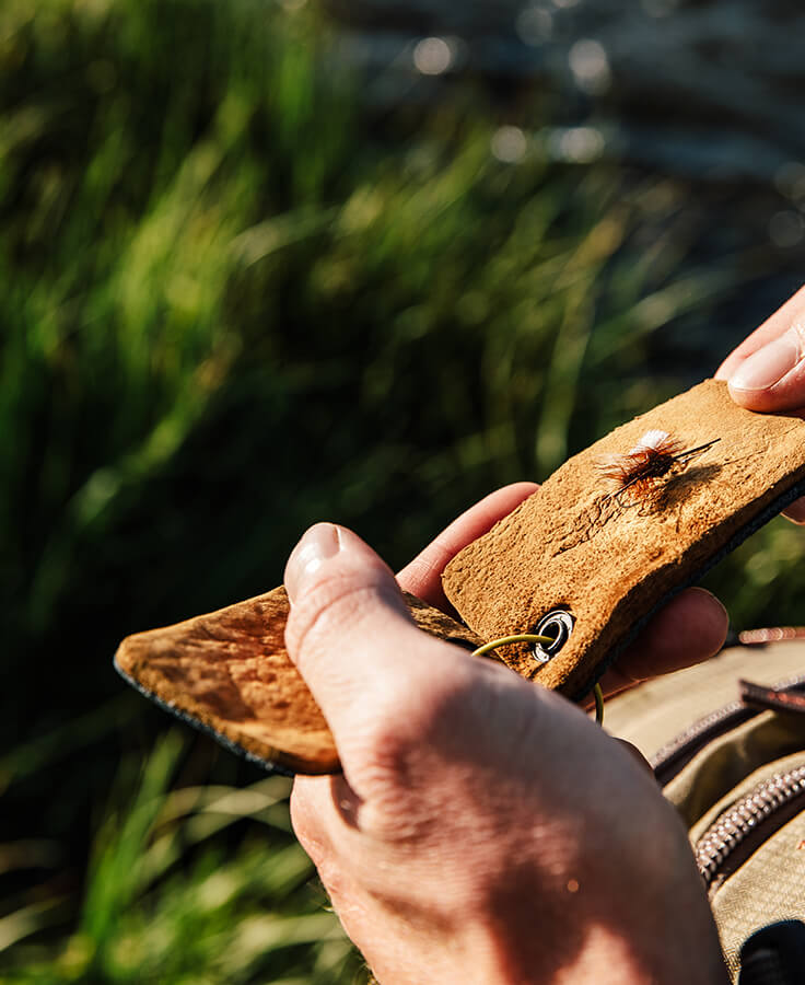Amadou is primarily composed of a mushroom: "Fomes fomentarius", and its primary purpose is taking soggy, water-logged, good-for-nothing dry flies and getting them ready to fish again. A simple squeeze between the two pads of this magical material sucks out water from a drowned fly, restoring its ability to float. Though it stands alone as a means of keeping flies floating, it is best viewed as a piece of the dry fly puzzle that includes some kind of dip or gel, and/or a powder floatant.