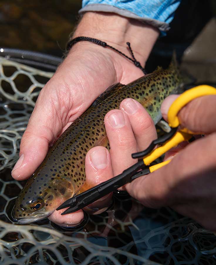 Sometimes sliding a pair of hemostats into a pocket, belt loop or the waist of board shorts is a better solution than clipping them to a vest or waders. The Hitch Pin handles allow these hemostats to be securely stored just about anywhere, and present an ergonomic resting place for your fingers while in use.