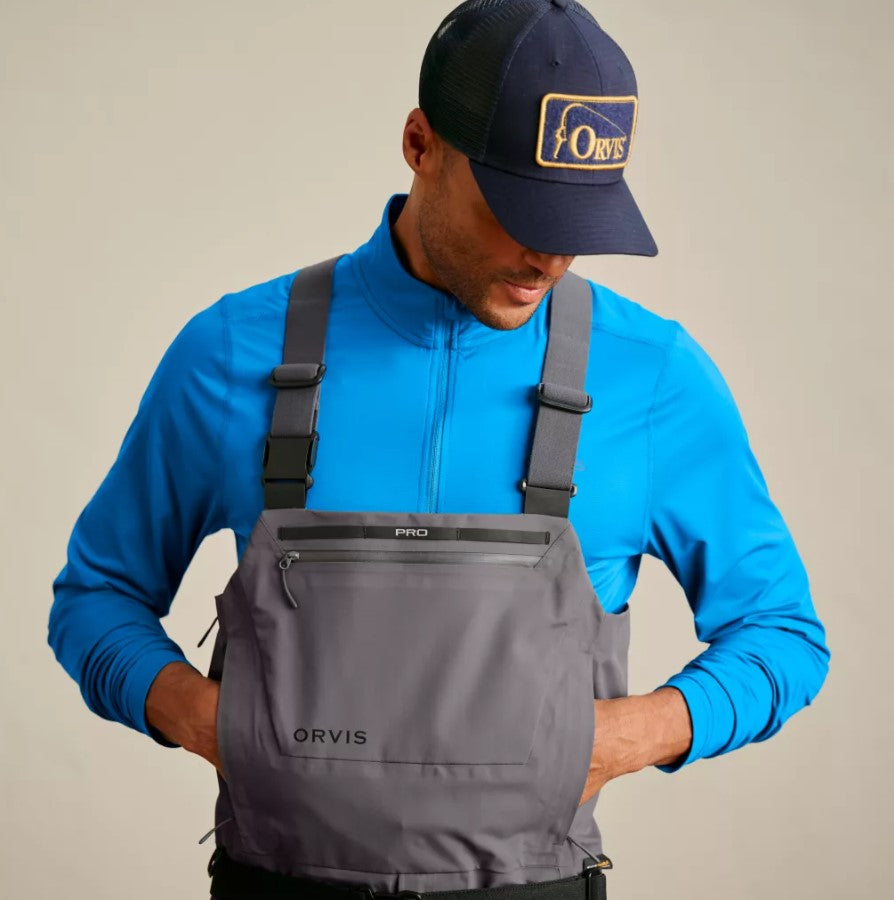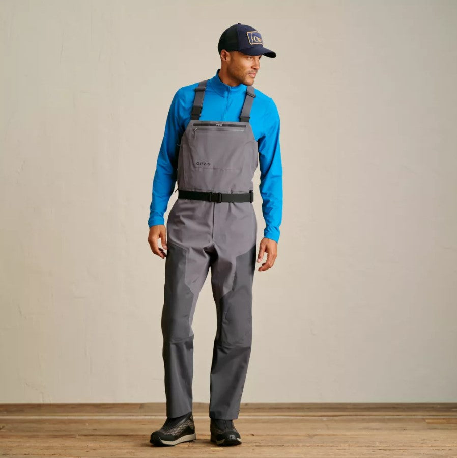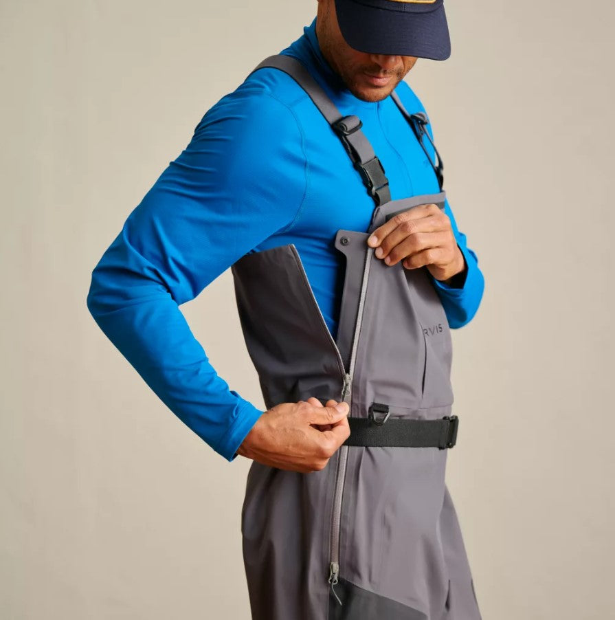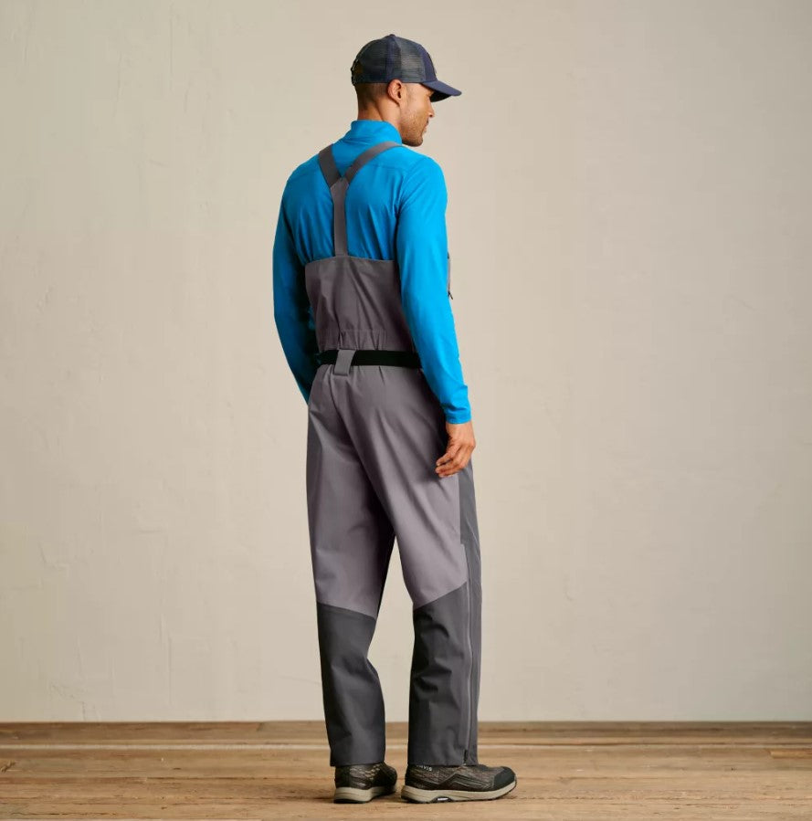 The Orvis Men's Pro Fishing Bib is built to withstand the toughest fishing conditions. The durable, four-layer CORDURA® shell and fully taped seams provide maximum protection against water, wind, and abrasion. The three-point suspension system and removable OrthoLite® knee pads ensure comfort and support, while the YKK AquaGuard® zippers and storm flaps keep you dry. The kill-switch D-ring and unique gathered back panel provide added functionality.