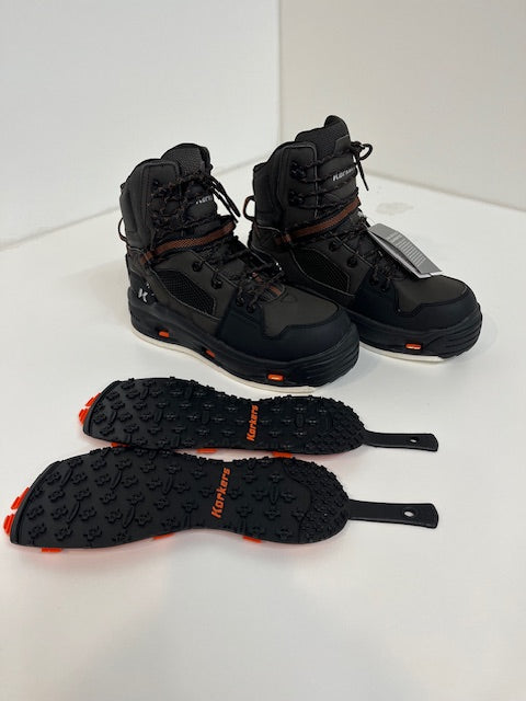 The innovative heel lock system securely anchors your entire foot and turns into a stable platform for hiking performance on challenging terrain and river bottoms. Terror Ridge Wading Boots are stronger than leather and abrasion resistant. Drainage is thru internal channels, exiting via midsole ports. Customize traction with the OmniTrax® Interchangeable sole system to suit your preferences. Feel confident when wading across frigid waters and swift currents to find that ideal fishing hole.