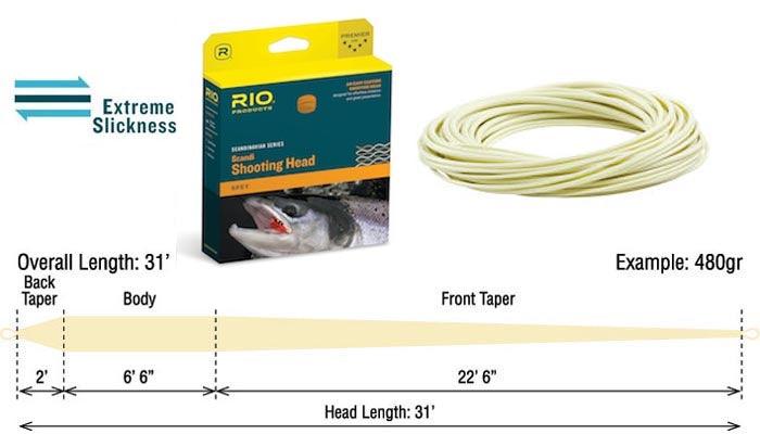 An easy casting shooting head designed for effortless distance and great presentation The RIO Scandi head is a very easy casting Scandi style shooting head, built on RIO’s ultra-low stretch ConnectCore for the utmost in casting control and sensitivity. It is available in a multitude of lengths and weights to cover all rod and angling situations. For tight casting spots and the utmost in ease of casting use a head length that is between 2.5 and 3 times the length of the rod, thus a 12 ft rod would work best with a head that is between 30 and 36 ft in length. The shorter the head length, the tighter the back casting space an angler can fish in. With more room and better casting skills a longer head provides the angler with less line to strip in between each cast and more fishing time.