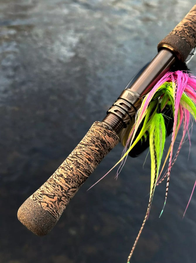 Every detail is musky-focused, from the ceramic-insert titanium and stainless guides—which resist wear from tungsten-coated lines—to the custom Cactus Cork handles. These handles are designed for superior comfort and control, making casting, strip-setting, and executing figure-eights more effective and less tiring. The Tannic Musky/Pike is built to deliver total satisfaction on the water with its optimized performance and unique aesthetics.