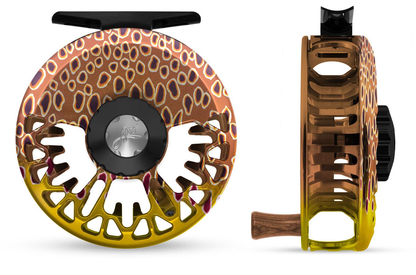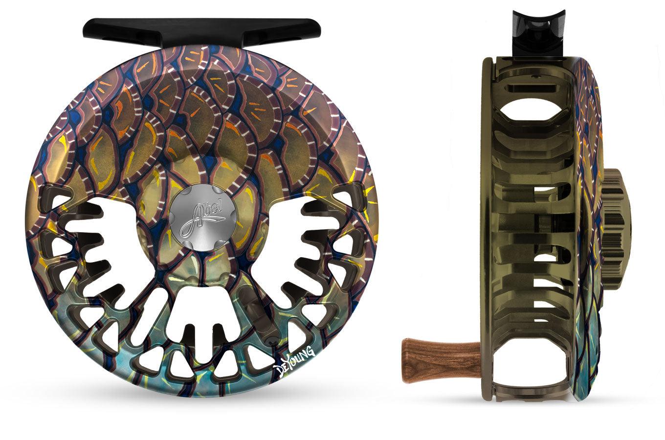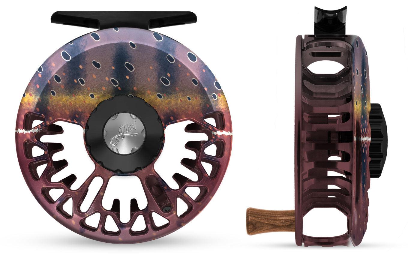 Abel VAYA Fly Reel for Fresh or Saltwater is available in standard or custom colors such as fish graphic Native Cutthroat finish. This new reel is uniquely machined to provide modern aesthetics. Features include 5-disc alternating carbon fiber/stainless steel drag and CNC-milled fly engravings on frame interior.