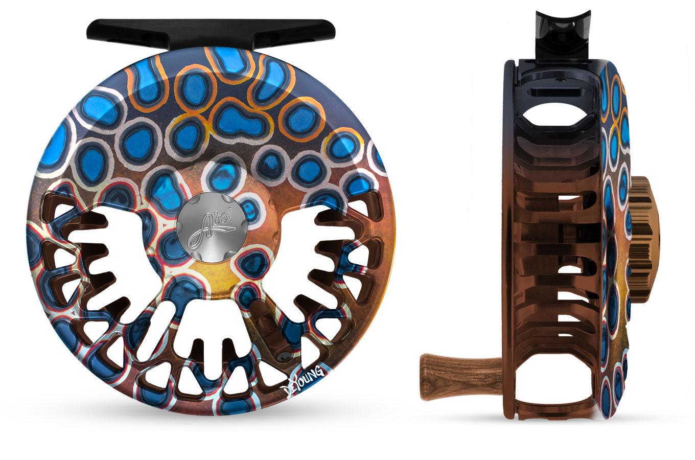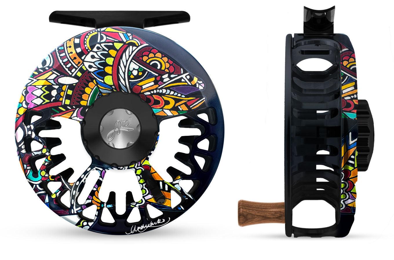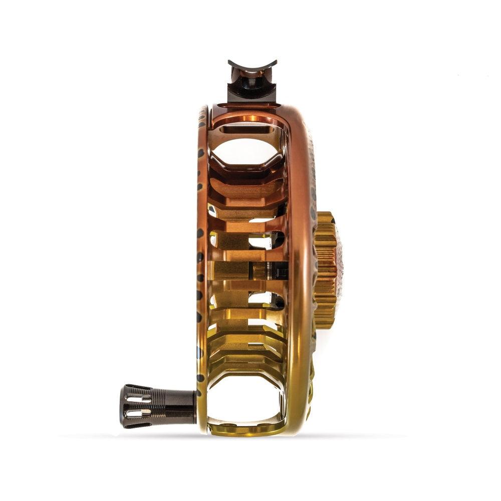 Abel VAYA Fly Reel for Fresh or Saltwater is available in standard or custom colors such as fish graphic Native Cutthroat finish. This new reel is uniquely machined to provide modern aesthetics. Features include 5-disc alternating carbon fiber/stainless steel drag and CNC-milled fly engravings on frame interior.