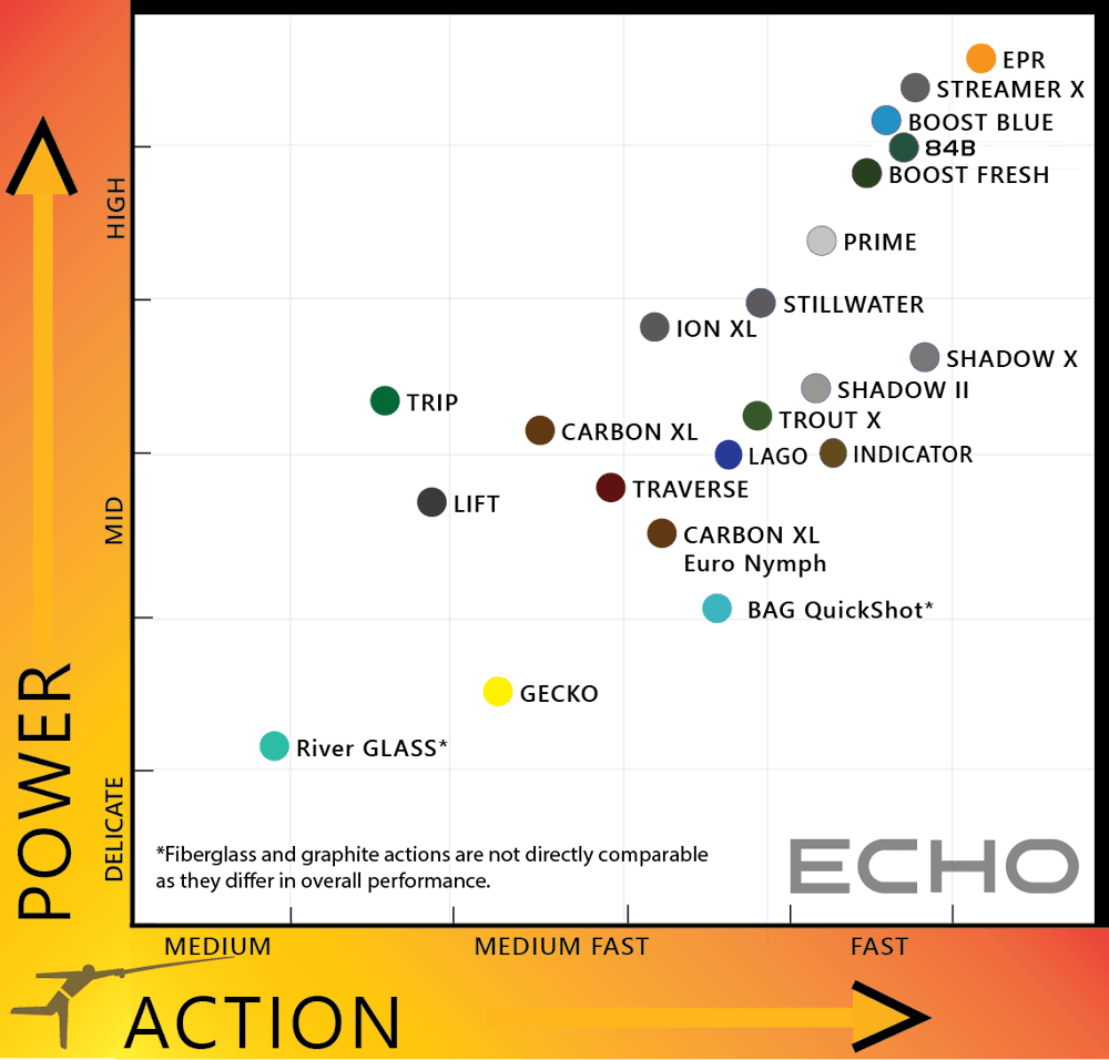 The Echo 84-B fly rod is a fast-action, 8-foot, 4-inch rod designed for casting big flies in adverse conditions and around obstacles. It was developed specifically for bass fishing, but it can also be used for other warmwater fish such as pike and muskie. Quick pickup and minimal false casting makes this the ultimate rod for ambush species.