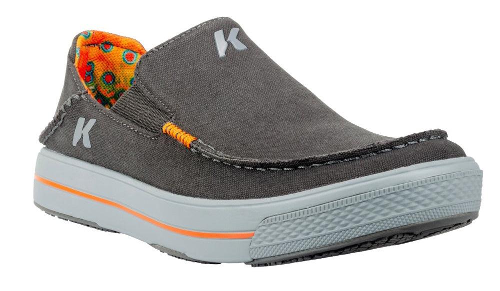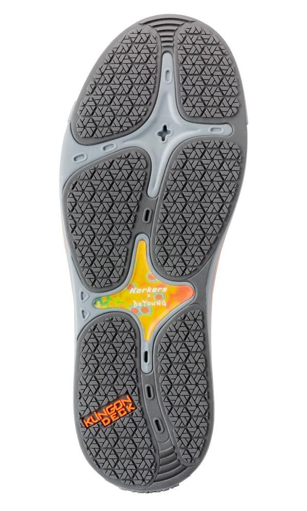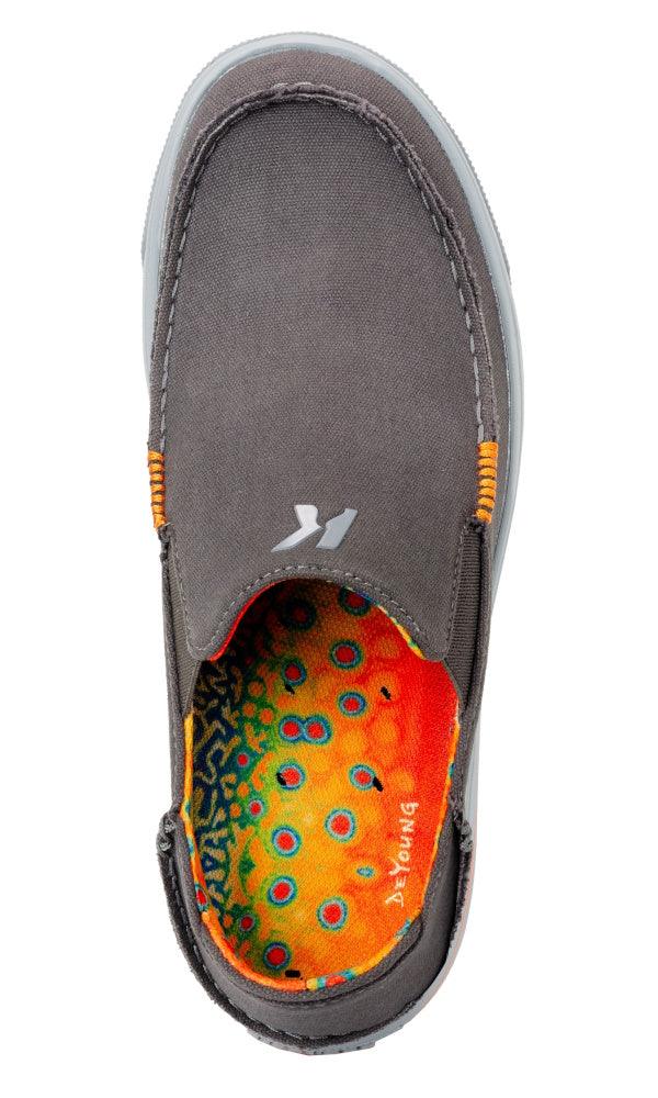 Korkers Fish Moc provides 100% comfort with this ideal summer shoe. Featuring Korker's Cush-Tech™ uber-comfy footbed for all-day wear. Grip all terrain with a non-marking Kling-On Deck™ rubber with incredible grip on wet surfaces. Beautiful fish prints from the fish artist, Derek DeYoung, adorn the soles.