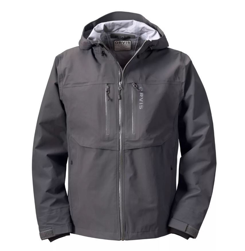 The men's Clearwater is an exceptional value in a full-featured wading jacket with 20K Waterproofness and 15K Breathability rating. Three-layer nylon shell fabric with fully taped seams for superior weatherproofing. YKK® AquaGuard® water-resistant front closure. Two large front storage pockets and two handwarmer pockets. Integrated neoprene cuffs seal off vulnerable water entry points. Rear yoke D-ring for net attachment and three-way adjustable storm hood with laminated brim. Adjustable hem for secure fit, and a DWR (Durable Water Repellent) finish repels water from the fabric surface.