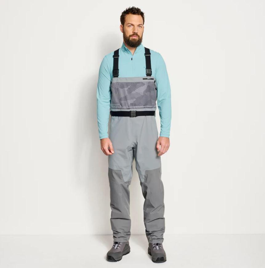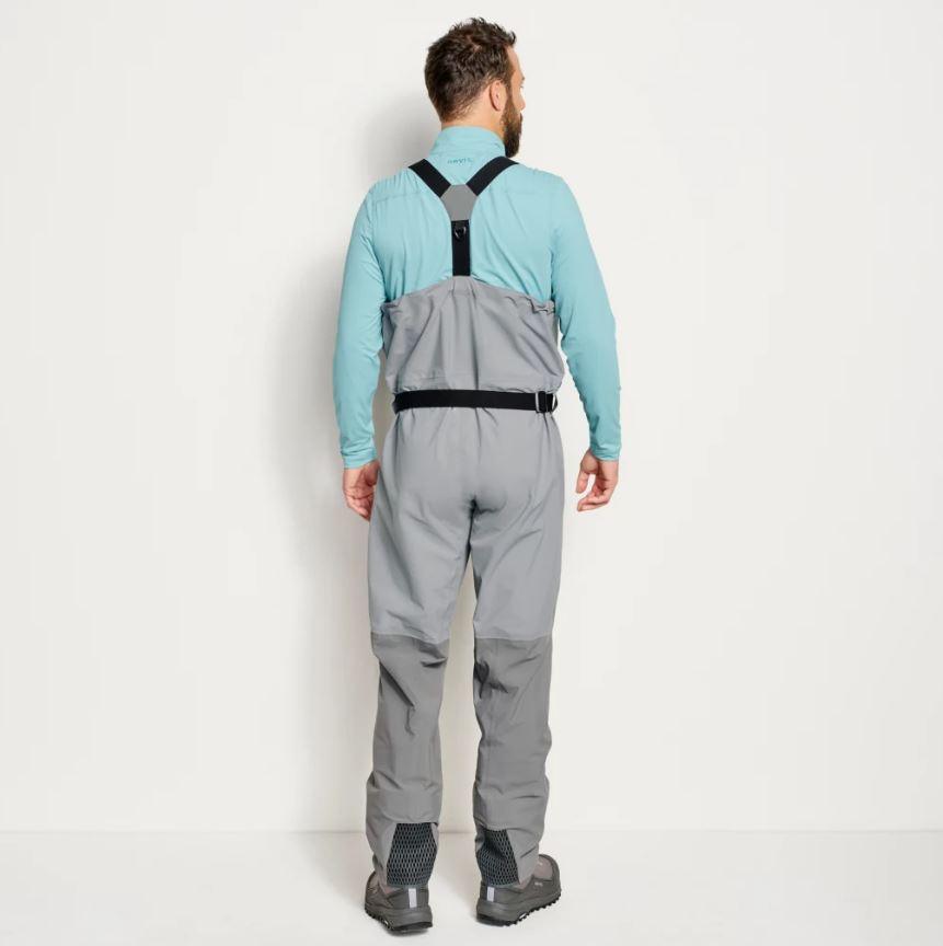 More features include a sizeable, stretchy external pocket at chest is ideal for stuffing a hand or two inside for a quick warmup between casts, with a flip-out accessory pocket for valuables. Floatant, hemos, and hook sharpeners stand at the ready right where you’d reach for them, given the external, rubberized tool-docking tabs and daisy chain. Orvis streamlined the padded 3mm OrthoLite® knee pads for more casting comfort when you’ve gotta drop into low-pro stealth mode to make that presentation to spooky fish. Also streamlined for less water drag, the PU-reinforced gravel guards feature a hidden snap to keep them securely affixed to your wading boots. Modern, anatomically correct 3.5mm neoprene booties round out the new design, giving you contoured comfort that won’t bunch up at the toe.