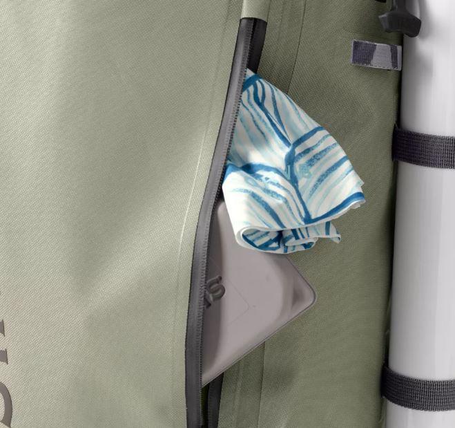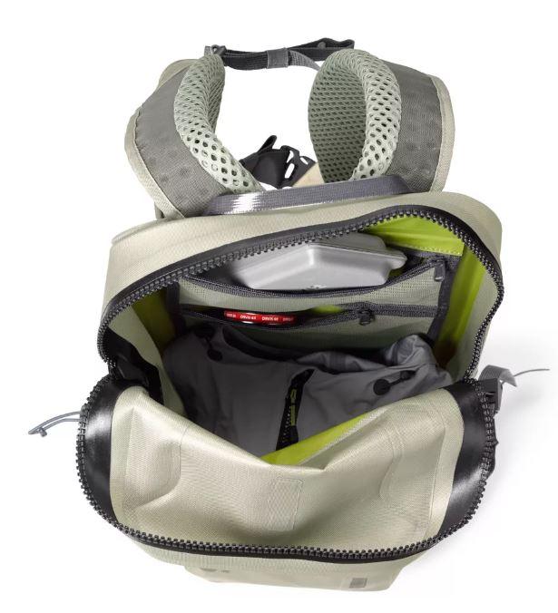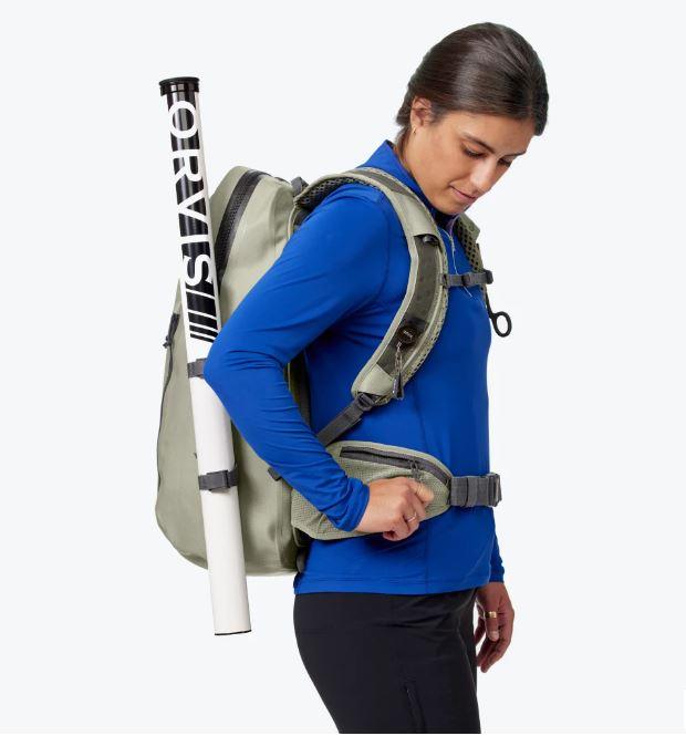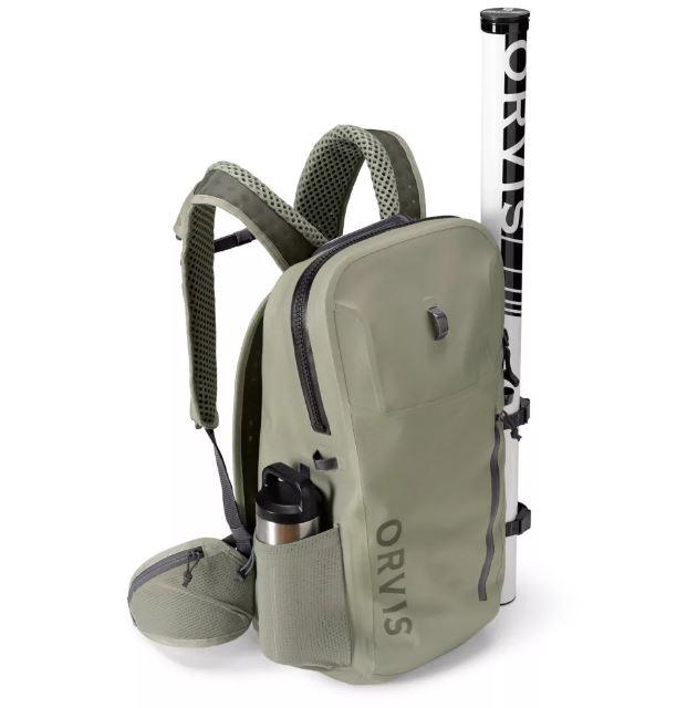 The Orvis Waterproof Backpack is a durable and well-designed backpack that is perfect for keeping your gear dry in wet conditions. It is made from 840D TPU-coated nylon with high-frequency welded construction, which makes it completely waterproof. The backpack also features breathable shoulder straps, a waterproof TIZIP® MasterSeal zip, an integrated back panel net storage with D-ring, a padded lumbar waist strap with zip pockets, and a water bottle pocket with retention leash.