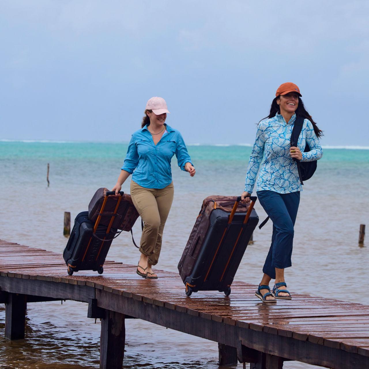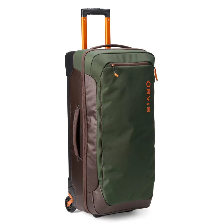 Head off the beaten path with confidence using this travel-tough recycled roller luggage. Designed by Orvis' experienced adventure travelers, this large roller bag is made of 100% recycled CORDURA® re/cor™. With a hardshell-back case, it’s lighter weight, water repellent, and sized for longer trips. The ergonomically engineered telescoping trolley handle and low-profile wheels make easy work of navigating airport terminals and city streets. Lockable zippers, interior mesh compartments for organizing contents, and hidden daisy chain for holding attachments. Accommodates 9' 4-piece fly rod tube.
