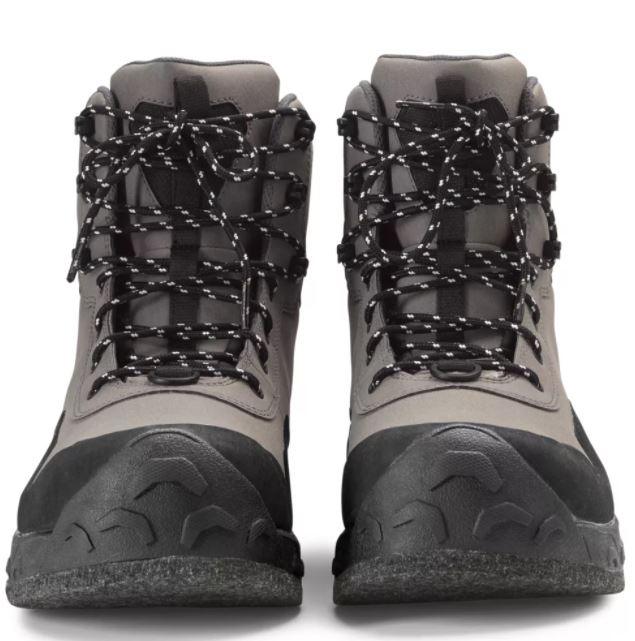 Specifically designed and built for a woman's foot, the Clearwater felt sole wading boot is made with a full synthetic leather upper that provides comfort and durability without excessive seams. The boot is protected by a scratch rubber toe, vamp, and heel counter for added durability, and a heavy-duty rubber toe bumper protects the foot in tough wading conditions. An integrated EVA foam footbed offers all-day comfort and a wider fit. A phylon midsole and ESS plate provide stability, and excellent stud retention. The rubber outsole option has an aggressive lug design and strategic stud locations for enhanced grip. In gravel. Synthetic leather upper.