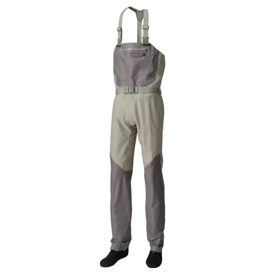 - Streamlined neoprene gravel guard tightly covers boots to minimize drag and water collection for easier wading