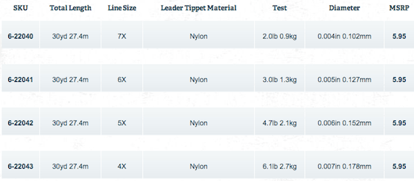 Extremely supple, soft nylon. Ideal for trout, small flies and anytime you need a subtle presentation.