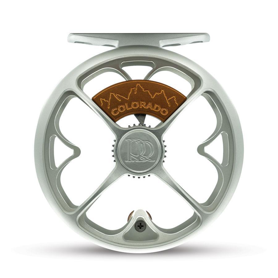 The Colorado's beautiful aesthetics are defined by aerodynamic shapes and surfaces. The look of this reel is different from anything on the market today. An innovative, all-metal external clicker accentuates the back of the reel, complete with a machined silhouette of our local San Juan Mountains and a classic click-pawl sound. The spool is more open than its predecessor, making the face of the reel appear spacious and clean. Notice the beveled large arbor shows off the backing and line.