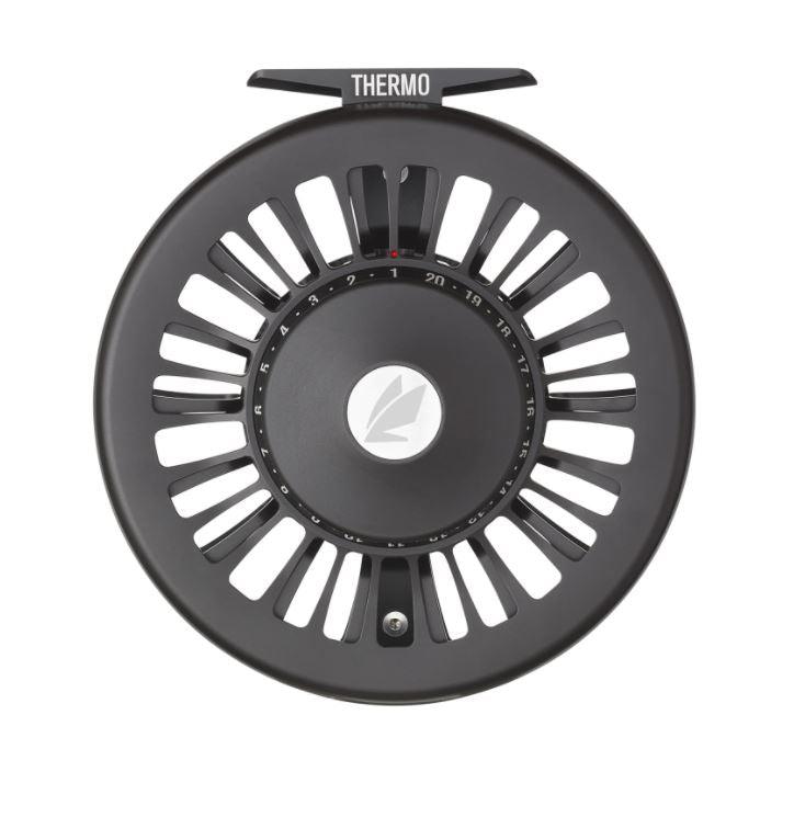 The THERMO reel series boasts an ultra-robust SCS drag package specifically built and tuned for the extreme. This heavy-duty reel provides the endurance to outlast a blue marlin and the stopping power to bring in a Giant Trevally from the reef. Anglers will see no drop-off, skipping or wear due to overheating as it delivers 0 to 20lbs of consistent drag pressure throughout the entire run of the fish. The drag efficiently dissipates the heat across its fully sealed extra-large carbon brake discs. 20 easy-to-see drag settings sit atop a large-diameter drag knob that is incredibly easy to grip and adjust in the heat of a battle, while 39 detents allow for fine tuning adjustments for any leader and tippet combination. The extra sturdy frame and spool are designed to hold up to the rigors of boat fishing where a knock on the gunwale or pounding run through breakers is not unusual. With a hefty large diameter ergonomic handle for maximum grip and control, and large arbor spool for quick pick up and 500+ yards backing capacity, the THERMO is the ultimate powerhouse and leader in big game reel performance and reliability.