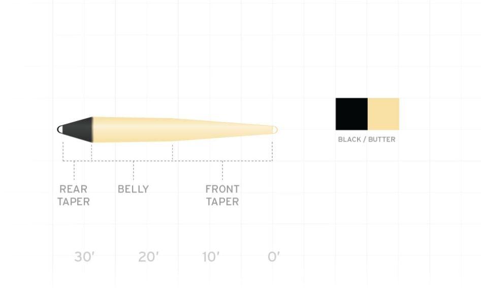 The Scandi is smooth and forgiving, perfectly suited for a variety of casting styles and any rod. The rear taper has a high contrast sighter to identify the back of the head.