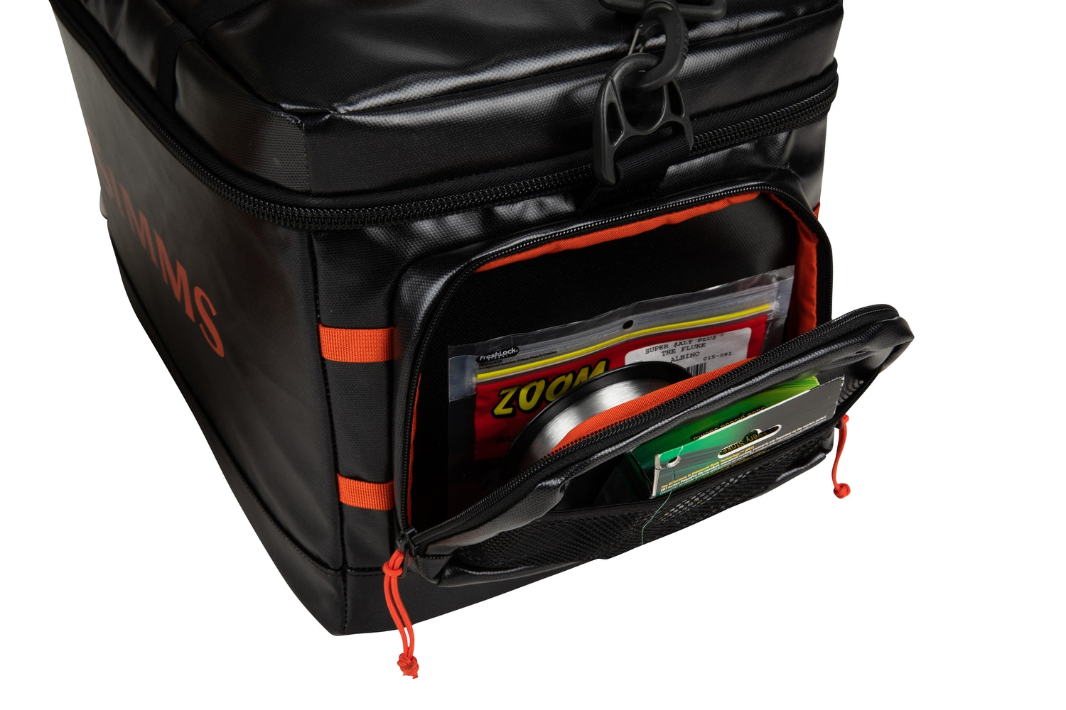 - Laser-cut lash ports and webbing loops offer attachment of tools, as well as other Simms packs and accessories