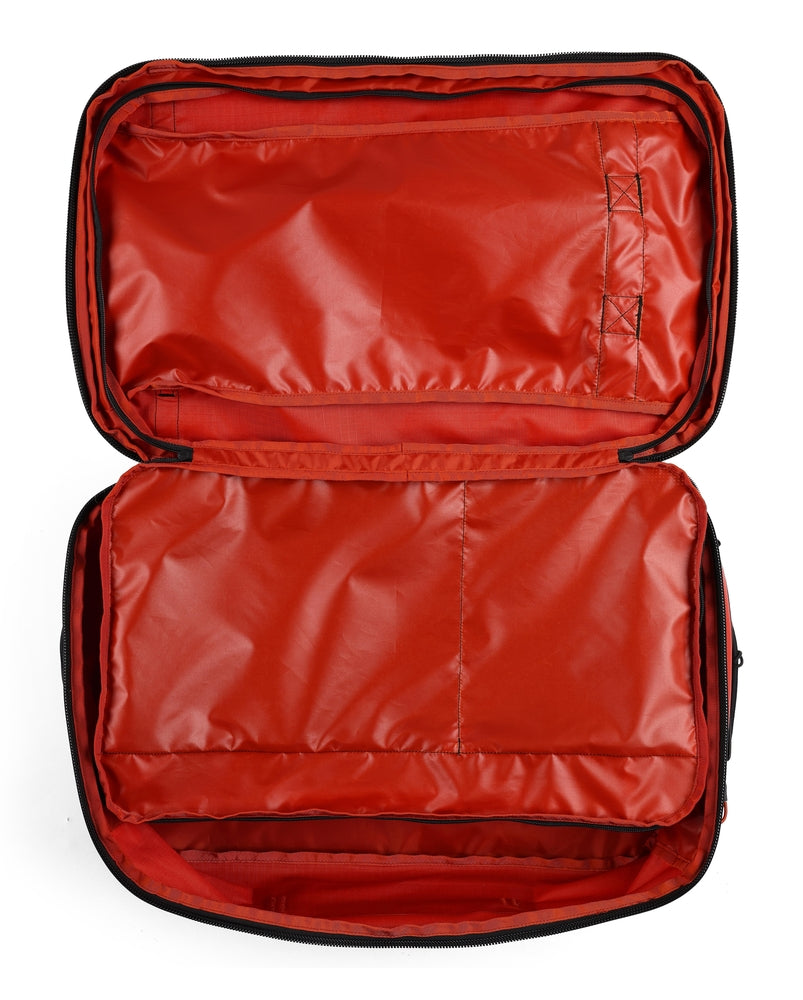 - The 270-degree clamshell-style main opening is secured by a durable YKK Aquaguard #10 zipper and exposes the cavernous main compartment when unzipped
