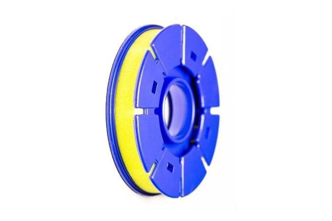The tenkara line holder is a simple plastic spool with a core of yellow foam used to trap the line after you wind it. Made by Meiho, in Japan. It accommodates tenkara level lines and tenkara tapered lines, and it can be slid onto the handle for transport.